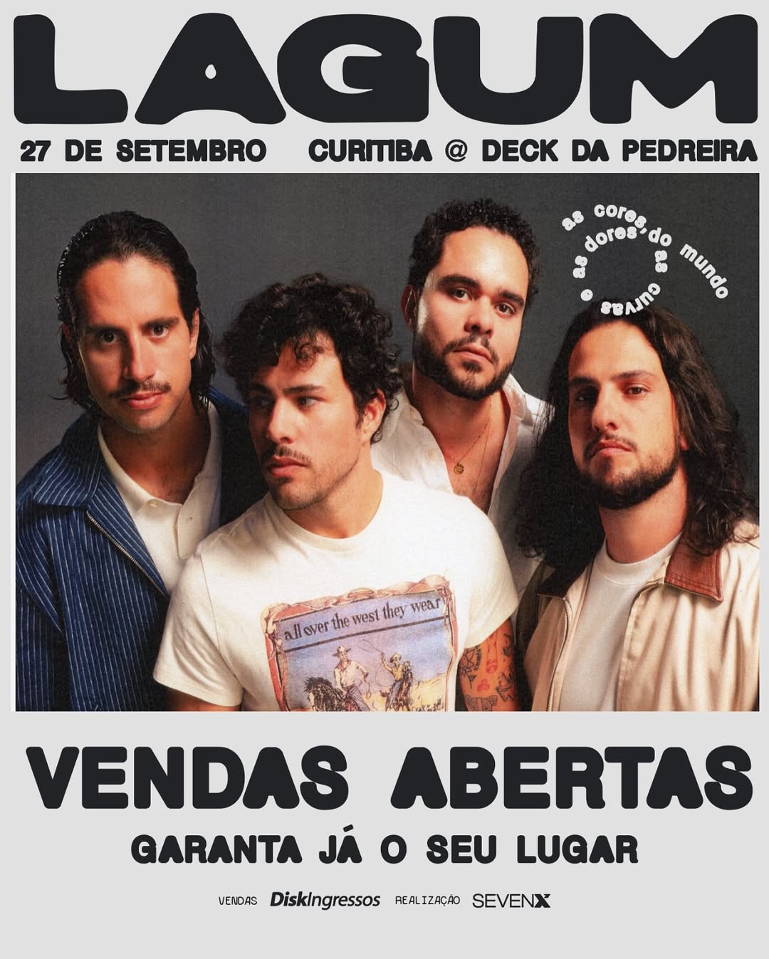 A tour inédita LAGUM: As Cores, as Curvas e as Dores do Mundo chega a Curitiba no dia 27/09, no incrível Deck da Pedreira – e com todo o conforto de um local coberto.